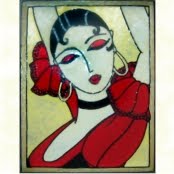 A fan will definitely be part of the design, and an immediately reconisable iconic flamenco style dress. The distictly Spanish colour scheme of scarlet red and yellow will definitely be combined with the strong black straight lines and curves of the art deco movement.